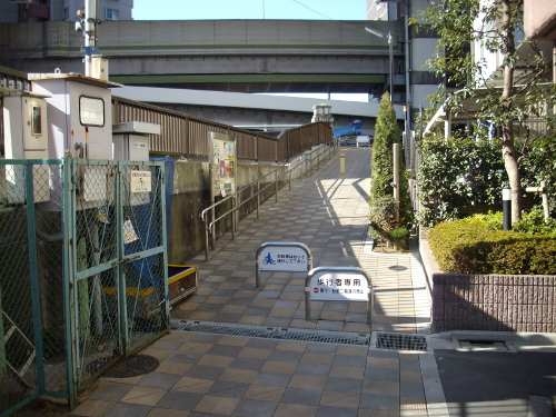通过将现有的阶梯道路改设成倾斜平滑的身障人士通道,可在紧急时供小型汽车通行。另外,由于现有护岸挡墙老化,无法施加土壤压力,因此可采用轻质土壤。但由于是护岸墙,有相对水位上升的可能,所以作为防止上浮的对策,可把AQUAROAD作为轻质土壤来代替EPS工法。