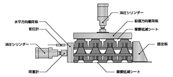 在叠放状态的情况下,从垂直方向施加一定的荷重(假设为填埋在土壤中的状态),进行了水平方向的压缩试验。