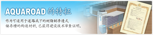 AQUAROAD作为可适用于道路底下的树脂制渗透式储存槽的构造材料,已获得建设技术审查证明。